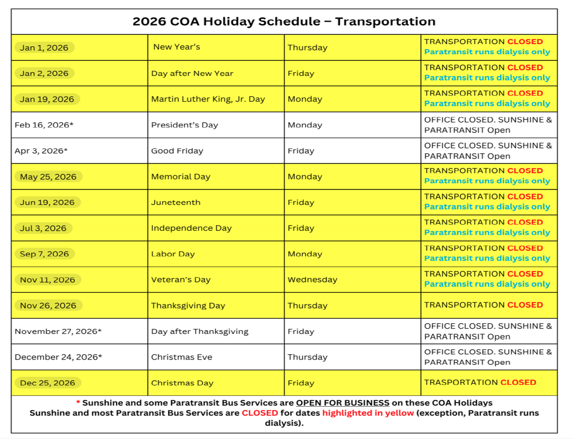 Holiday Schedule